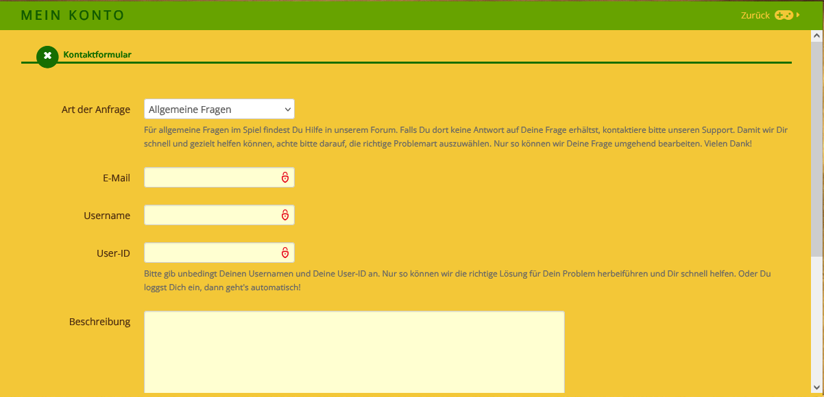 Dort wählst du Allgemeine Fragen aus, nennst deinen Usernamen und deine User-ID und beschreibst dann dein Problem. Dass du keinen Zugriff mehr hast auf deine alte Mail-Adresse, die du auch nennst. Und bittest darum, die Mail Adresse in deine neue Mailadresse zu ändern und auch gleich die Frage, ob man dir dein Anmeldedatum nennen kann. Der Support wird dir dann schreiben, was du dann noch machen musst.