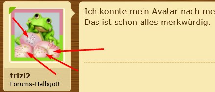 Das Avatar sehe ich aber nicht, bei trizi2, da sitzt ein Frosch ohne Eier.