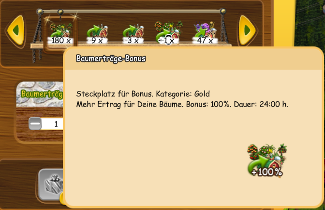 ich vermute mal, dass du meinst, dass du von den Bäumen mehr ernten konntest, also statt 4 Früchte von einem Baum konntest du 8 Früchte von einem Baum ernten. Das kann unterschiedeliche Gründe haben. Es gibt viele WL, die geben nach der Aktivierung 100% mehr Ernte für eine bestimmte Zeit bei Bäumen oder Farm-Wheel Gewinne, die 100% mehr Ernte für eine Zeit geben. Auch können Items für eine kurze Zeit einen höheren Ertrag bringen. Es gibt auch Bonis, die einen höheren Ertrag bei Bäumen bringen kann: