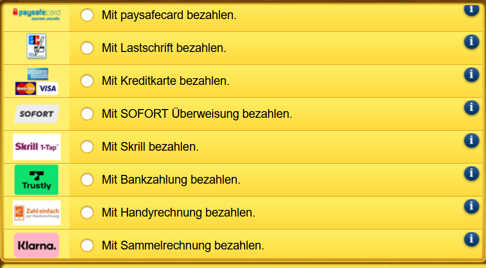 Es ist auch möglich eine paysafecard über geringere Beträge zu kaufen.