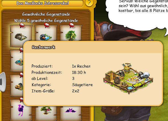 Mini-Event Feedback & Gespräche zu Doc MacBock (Baumbola, Stallsino , Werkzg- u.Boxentopf) / Giver-Item Orakel