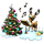 Er nimmt ein Ende der Kette in sein Maul und er und sein Rentierkumpel spannen die Lichterkette über den Teich.