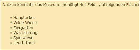 Beispiel Giveritem Leuchtturm: es kann von der Grundstufe auf die 1. Stufe im Museum upgegradet werden, allerdings können keine weiteren Upgrades dann im Museum aufgesetzt werden.
