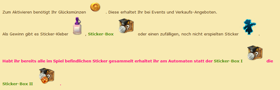 HIER sind von den erspielten Stickern aus deinem alten Sticker-Album NICHT alle zur Nutzung freigegeben.